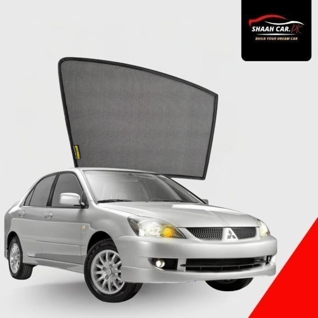 This is typically an aftermarket side window curtain designed for Mitsubishi Lancer models. These curtains are popular in Pakistan for comfort and privacy.
